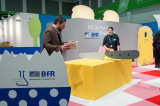 Die Mehrzahl der Bevölkerung in Deutschland verbindet Essen mit Genuss und hält Lebensmittel für sicher. In einigen Fällen können Verbraucherinnen und Verbraucher auch im Alltag dazu beitragen, dass Lebensmittel kein Gesundheitsrisiko werden. Honig, Tee, Kaffee, Eier, Toast oder Wurst können natürlich vorkommende, aber krankmachende Inhaltsstoffe oder Keime enthalten. Das BfR erklärt, wie man sich vor diesen Risiken durch den richtigen Umgang mit den verschiedenen Lebensmitteln schützen kann. Der BfR-Stand 101 auf dem Erlebnisbauernhof (Halle 3.2) der Internationalen Grünen Woche 2017 vom 20. bis 29. Januar 2017 in Berlin stellt einen gedeckten Frühstückstisch dar. Die Besucherinnen und Besucher bewegen sich zwischen mannshohen Frühstücksutensilien wie Toast, Butter, einer Müslischale und Kaffeekanne. Sie können sich über die Regeln der Lebensmittelhygiene informieren und ihr Wissen gleich am BfR-Fehlerkühlschrank testen, indem sie diesen richtig einsortieren. Darüber hinaus können sie an einem Quizrad drehen oder Pingpong auf dem überdimensionierten Butterstück spielen. Für alle, die ihr Erlebnis am BfR-Stand festhalten wollen, gibt es zwei Fotoboxen in Form einer Toastbrotscheibe und eines Eierbechers. Die Grüne Woche ist gleichzeitig der Auftakt für das 15. BfR-Jubiläumsjahr 2017, „Lebensmittel waren in der Geschichte noch nie so sicher wie heute. Seit seiner Gründung im November 2002 trägt das BfR erfolgreich dazu bei, Risiken zu erkennen und die Gesundheit der Verbraucher zu schützen“, so BfR-Präsident Professor Dr. Dr. Andreas Hensel.